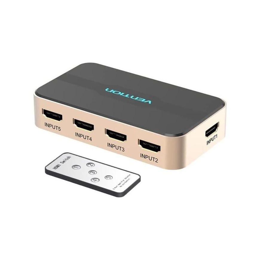 DUPLICADOR VENTION 5XHDMI HEMBRA - HDMI MACHO GOLD/BLACK