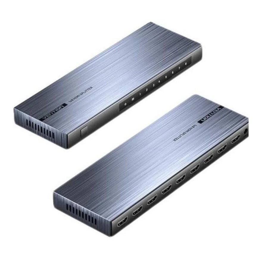 Divisor HDMI Vention AKQB0-EU de 1 entrada y 8 salidas, ideal para distribuir señal 4K a 30Hz a múltiples pantallas con fácil instalación y sin pérdida de calidad.