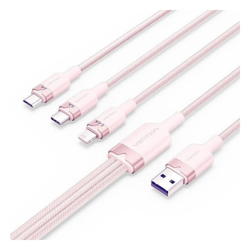 CABLE 3 EN 1 VENTION USB-A 2.0 - USB-C/LIGHTNING/MICRO-B 1.5M ALUMINIO ROSE