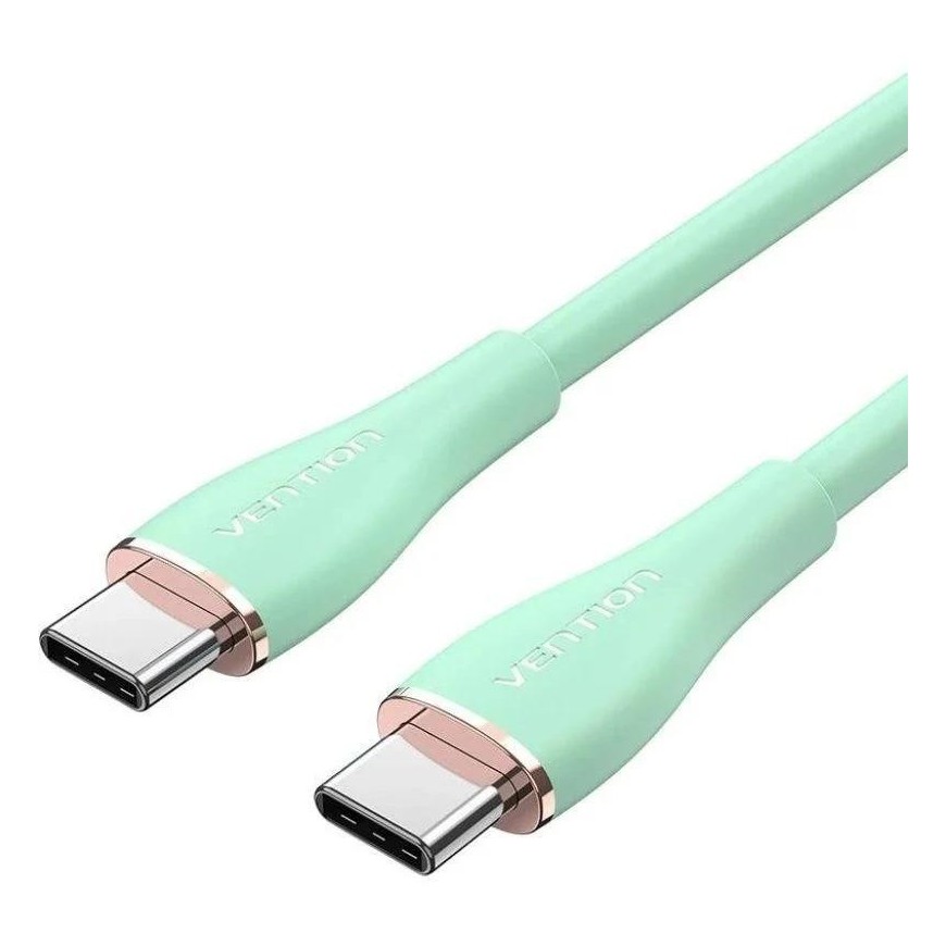 Cable USB-C 2.0 Vention (1.5 m, 5A) en silicona verde claro: flexible, duradero y potente para carga rápida y uso diario con estilo.