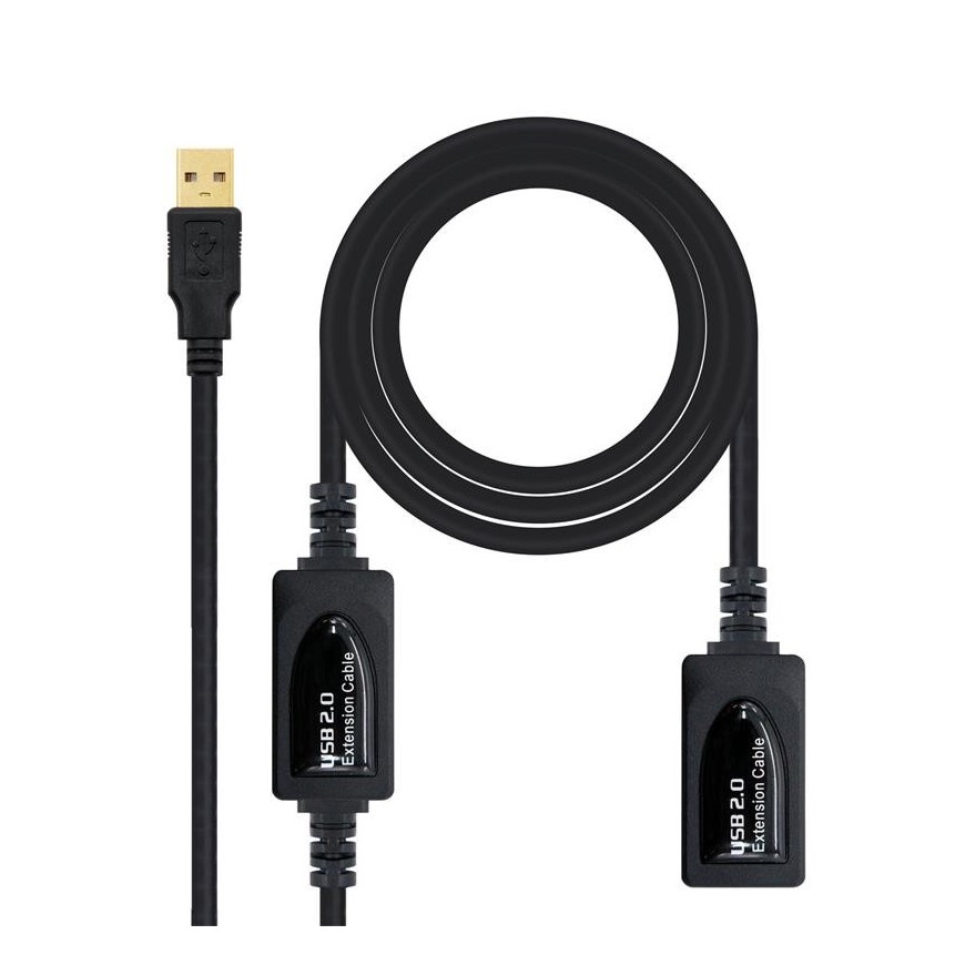 Nanocable CABLE USB 2.0 PROLONGADOR CON AMPLIFICADOR, TIPO A/M-A/H, 10 M, 10 m, USB A, USB A, 2.0, Male connector / Female connector, Negro