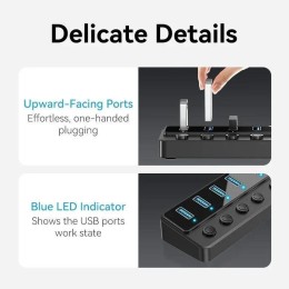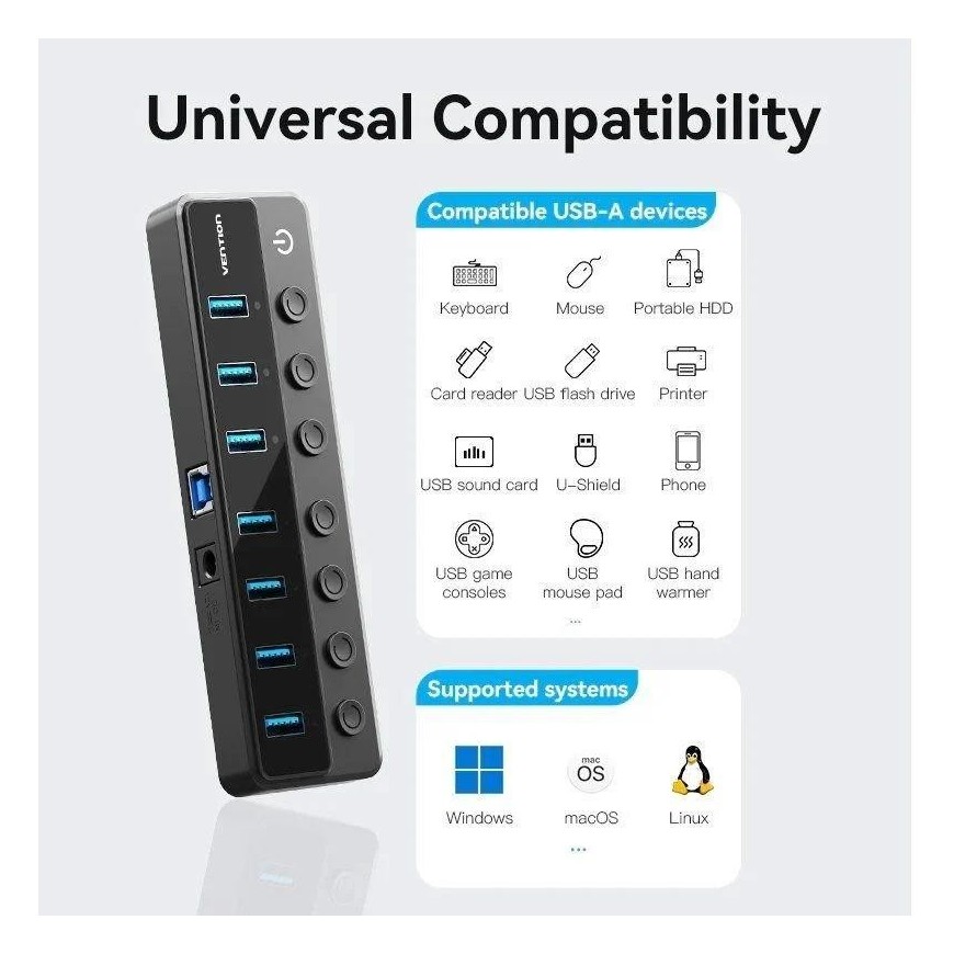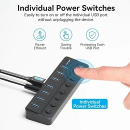 HUB VENTION USB 3.0 7 PUERTOS USB 3.0 INTERRUPTOR BLACK