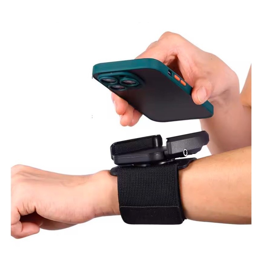 Soporte ajustable de muñeca diseñado para sujetar de forma segura PDAs o smartphones de hasta 7", ideal para entornos de trabajo móvil o logístico.