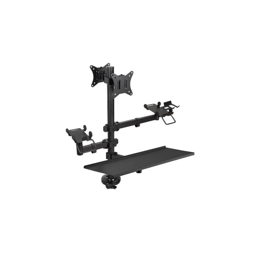 SOPORTE DE MESA TOOQ MONITOR + IMPRESORA + TERMINAL + BANDEJA TECLADO 17-32 2 BRAZOS BLACK