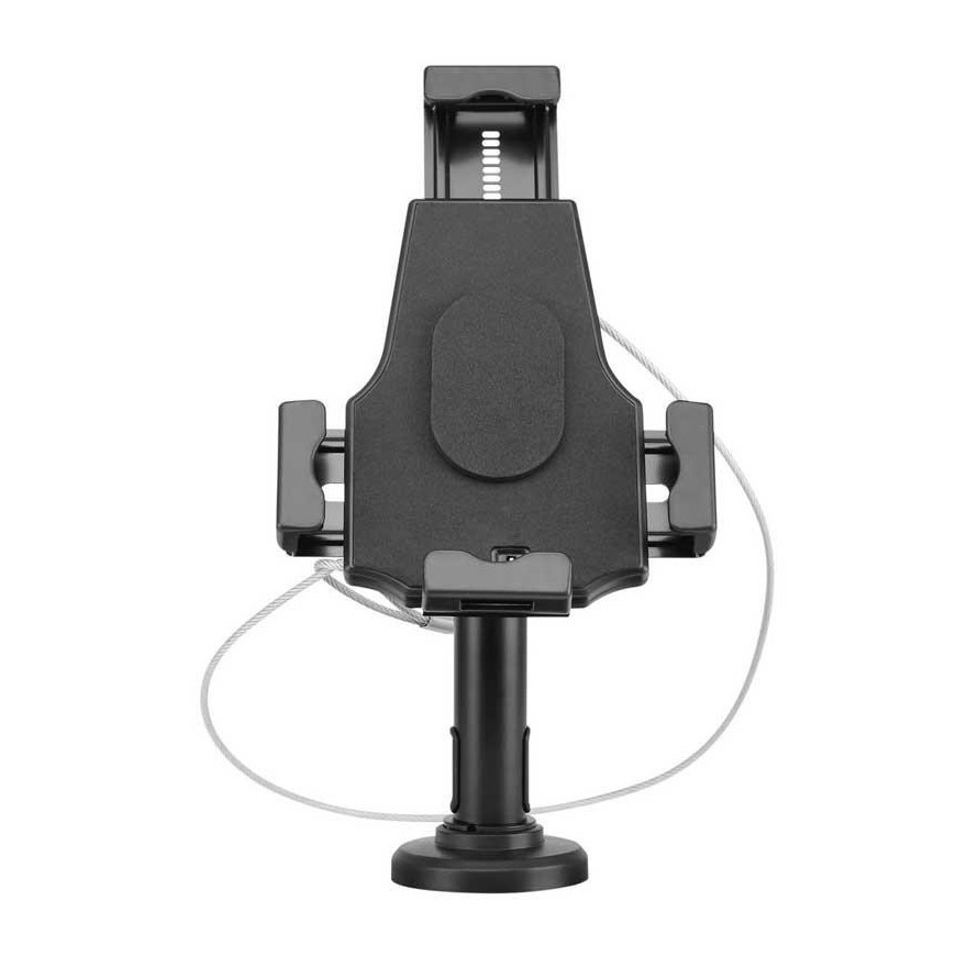 Soporte profesional antirobo de sobremesa o pared ajustable para tablet ideal para mostradores de exposiciones donde mostrar y colocar los dispositivos móviles evitando la preocupación de su robo o sustracción. Este soporte cuenta con un sistema antirobo con llave para la mayoría de las tablets de 8 a 11 pulgadas. Ideal para uso en comercios.