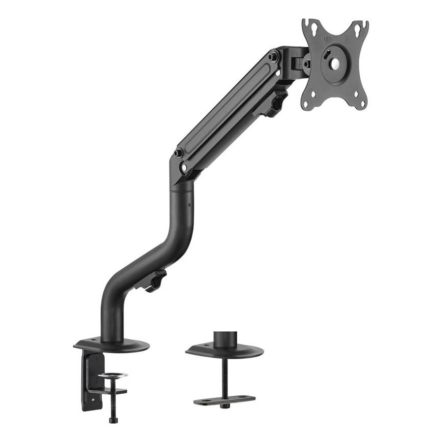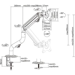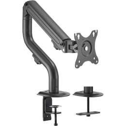 Soporte de mesa Eco Aisens contrapeso giratorio e inclinable para monitor/TV de 3 pivotes y 1 brazo fabricado con acero de alta resistencia y pintado con pintura electrostática para un acabado perfecto. Se permite la instalación en la mesa a través de abrazadera o de tornillo pasante.