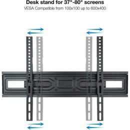 Soporte de pared TooQ LP7866TN-B para pantallas 37?- 80?. ¡Este soporte será imprescindible para ti! Fija tu pantalla a la pared y gana espacio. Tiene una capacidad de carga de 40 kg y un diseño elegante en color negro. ¡Disfruta de una instalación limpia y ordenada!