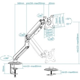SOPORTE DE MESA TV MONITOR TOOQ ERGONOMICO ASISTIDO 17-32 BLACK/SILVER