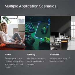 El Switch de escritorio TP-Link de 5 puertos 10/100 / 1000Mbps te proporciona una manera fácil de hacer la transición a Gigabit Ethernet. Aumenta la velocidad de tu servidor de red y conexiones backbone, o haz que Gigabit para el escritorio sea una realidad. El diseño Plug and Play, sin necesidad de configuración, hace que el producto sea fácil de usar.