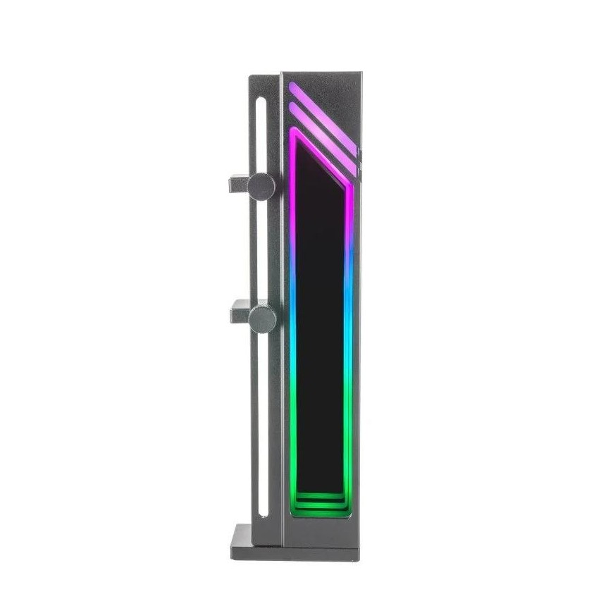 SOPORTE PARA TARJETA GRÁFICA ARGB MCA-GCB. Innovador soporte para tarjetas gráficas que combina una base magnética antideslizante y una estética deslumbrante con iluminación ARGB Infinity Mirror. Con su diseño universal, se adapta a cualquier tarjeta gráfica, ofreciendo estabilidad y un toque de personalización a tu PC. Disponible en negro y gris plateado, se integra perfectamente con tu configuración.