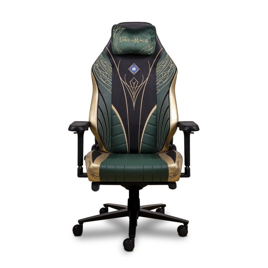 La silla gaming Monarch Edición Rivendell nace de la unión entre los maestros artesanos élficos y la casa Phoenix, inspirada en la belleza serena y la sabiduría ancestral del refugio de Elrond. Su diseño, en verde profundo con filigranas doradas, evoca los bosques otoñales y la luz dorada del atardecer sobre las torres élficas. En su respaldo destaca un emblema estelar bordado con más de 800.000 puntadas, símbolo de la armonía y la perfección de los Altos Elfos.