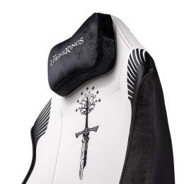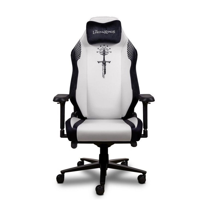 La silla gaming Monarch Edición Gondor es una creación artesanal inspirada en el esplendor de El Señor de los Anillos, resultado de la unión entre los artesanos de Phoenix y los forjadores de Gondor. Diseñada como un auténtico trono del Rey de Gondor, fusiona arte, historia y poder en cada detalle. Con más de 800,000 puntadas hechas a mano, su diseño rinde homenaje a la Ciudad Blanca, mostrando en su respaldo la Torre de Ecthelion, los Argonath y el Árbol Blanco, símbolos de nobleza y esperanza.