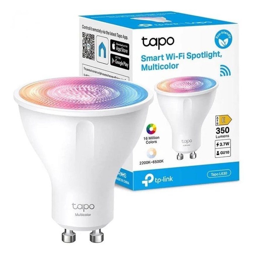 Luz Multicolor de 350 Lúmenes. La bombilla LED Tapo L630 se puede ajustar fácilmente cambiando el brillo, la temperatura y el color para cada uno de los 16 millones de colores disponibles. Gracias a su casquillo GU10 es fácilmente instalable en segundos, especialmente ideado para empotrarlo en techos proporcionando una gran iluminación indirecta que no daña los ojos.