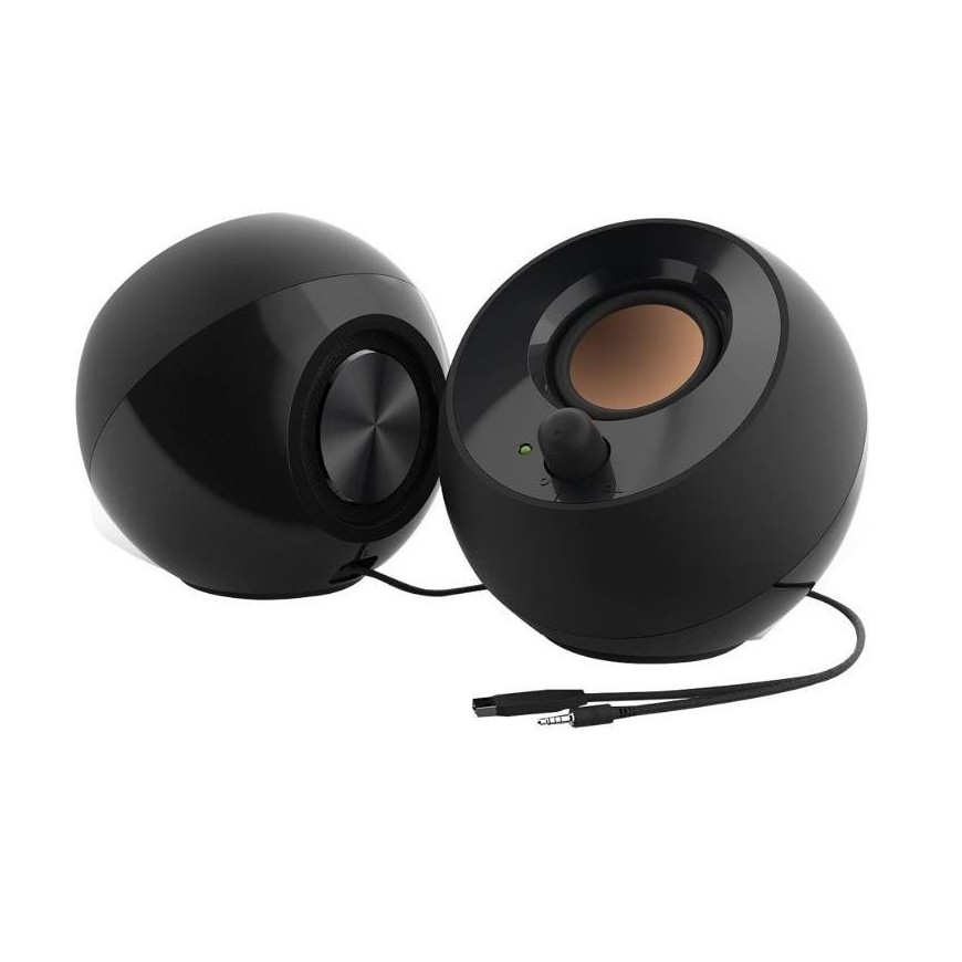 Inspirados por los jardines de rocas japoneses, los Creative Pebble con su forma de orbe son un sistema de altavoces 2.0 estilizado y elegante que luce perfecto en cualquier hogar y oficina. Presenta un escenario de sonido elevado 45° para una proyección de audio mejorada y se alimenta por un solo cable USB para un entretenimiento musical sin problemas.