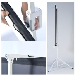DIFERENTES FORMATOS DE PROYECCIÓN: La pantalla de proyección de trípode es adaptable a varios formatos de proyección: 4:3, 16:9? con tan solo ajustar el tamaño de despliegue, es decir, podemos regular el tamaño de la pantalla que deseamos que se vea. La diagonal de la pantalla es de 112 pulgadas y ofrece una imagen nítida sin brillos gracias al tipo de tela.