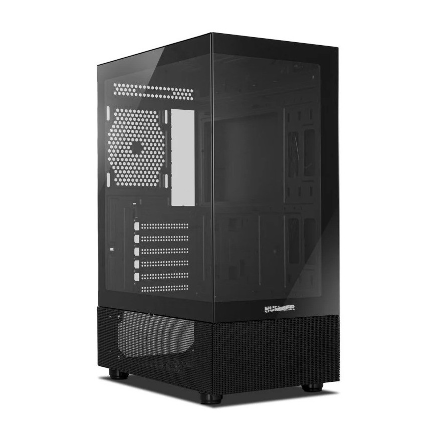 Nox Hummer Vision es una semitorre elegante con un impactante diseño minimal que ofrece unas vistas panorámicas a su interior. Con doble cristal templado, este chasis es una obra de arte. Esta caja de acero es compatible con gráficas de gran tamaño, de hasta 300 mm, y sistemas de refrigeración líquida de hasta 240 mm. Además, cuenta con capacidad para montar hasta un total de 5 ventiladores. Esta semitorre de Nox, ha sido pensada para sofisticar tu setup.