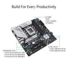 La placa base ASUS PRIME B760M-A WIFI D4 diseñada para procesadores híbridos Intel Core de 12ª y 13ª generación es ideal para montar un sistema potente y versátil. Las placas base ASUS Prime están diseñadas y fabricadas para usuarios exigentes que buscan un rendimiento constante y fiabilidad a largo plazo.