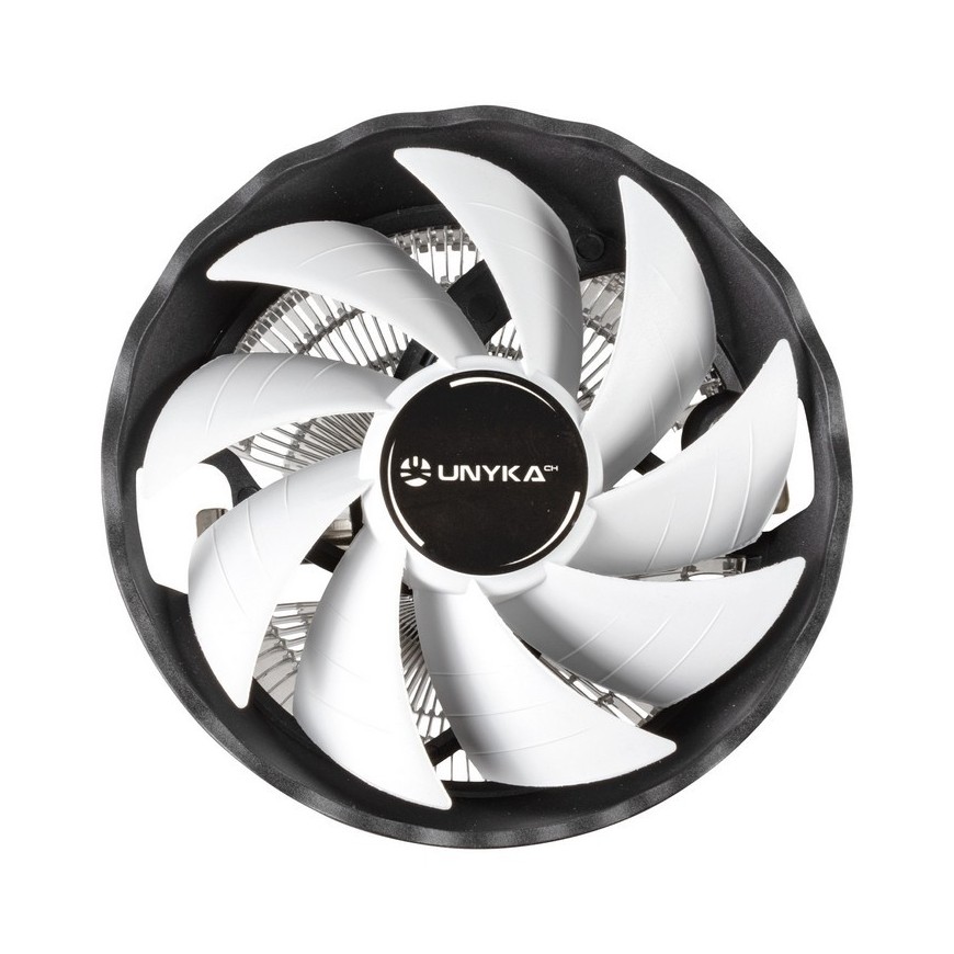 Disipador para CPU UNYKAch Jotun DF 120 White, de perfil bajo, con ventilador PWM de 120 mm y multisocket Intel/AMD, que ofrece una refrigeración eficiente y silenciosa para equipos compactos.