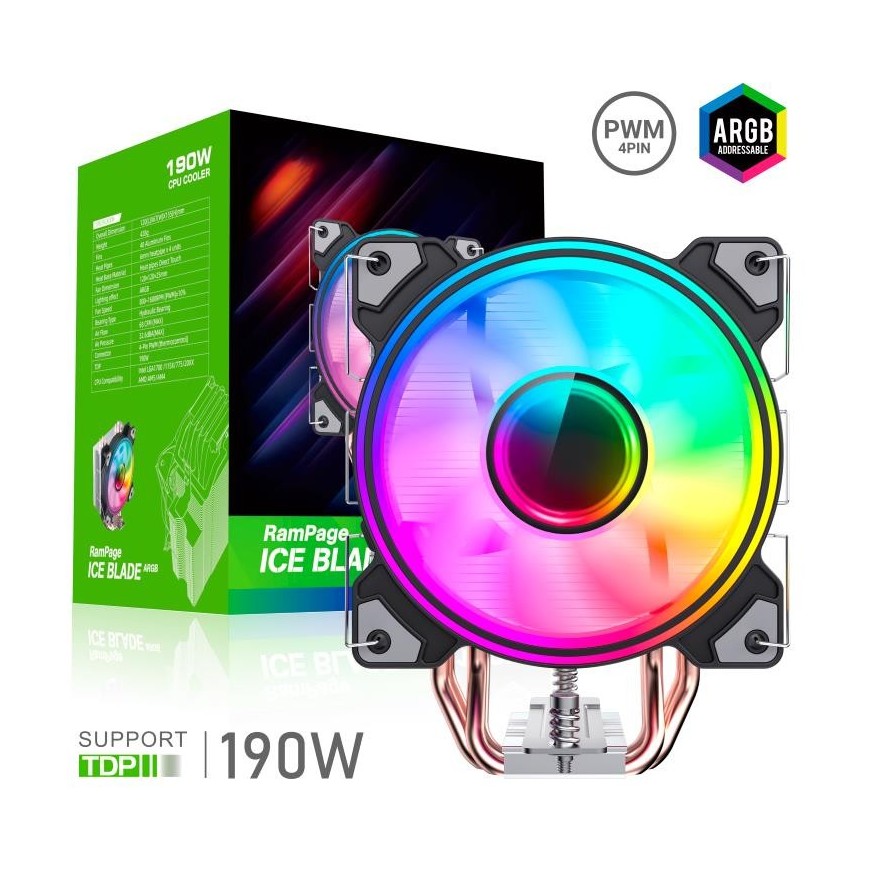 El Ice Blade ARGB CPU Cooler combina rendimiento y estilo para brindarte una solución de enfriamiento excepcional en un diseño elegante.