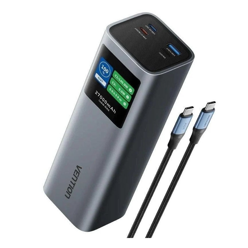 POWERBANK VENTION 27000MAH USB-A + 2USB-C DISPLAY 140W GREY