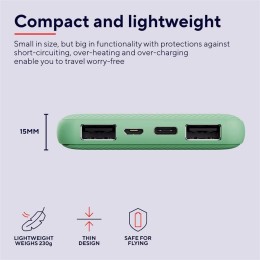 POWERBANK TRUST PRIMO SLIM 10000MAH X2 USB-A + USB-C + MICRO-USB ECO GREEN