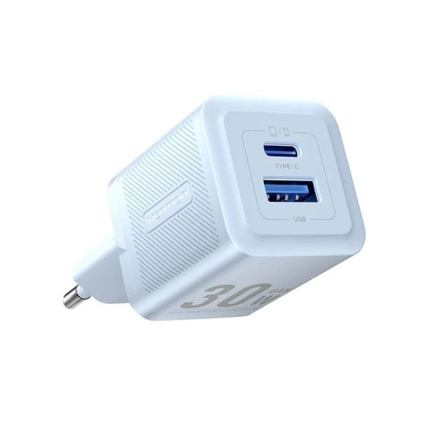 CARGADOR DE PARED VENTION GAN USB-C USB-A 30W BLUE