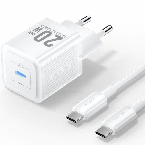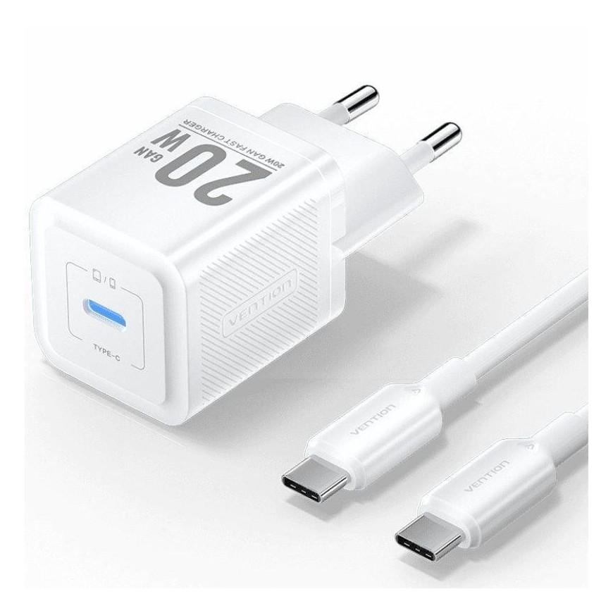 CARGADOR DE PARED VENTION GAN USB-C 20W WHITE + CABLE UCB-C 1M WHITE