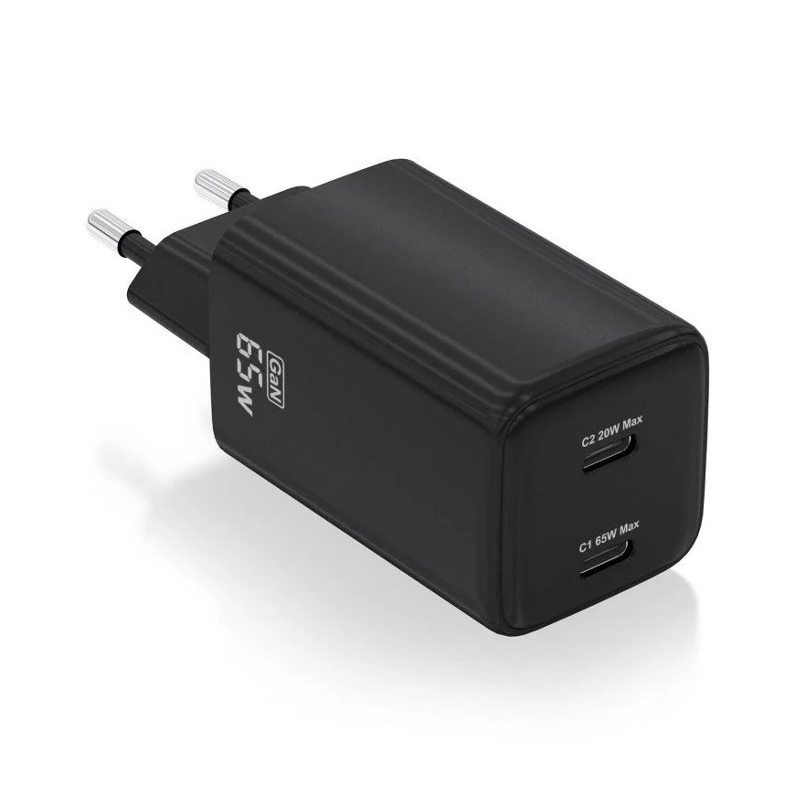 CARGADOR DE PARED AISENS GAN 2XUSB-C 65W BLACK