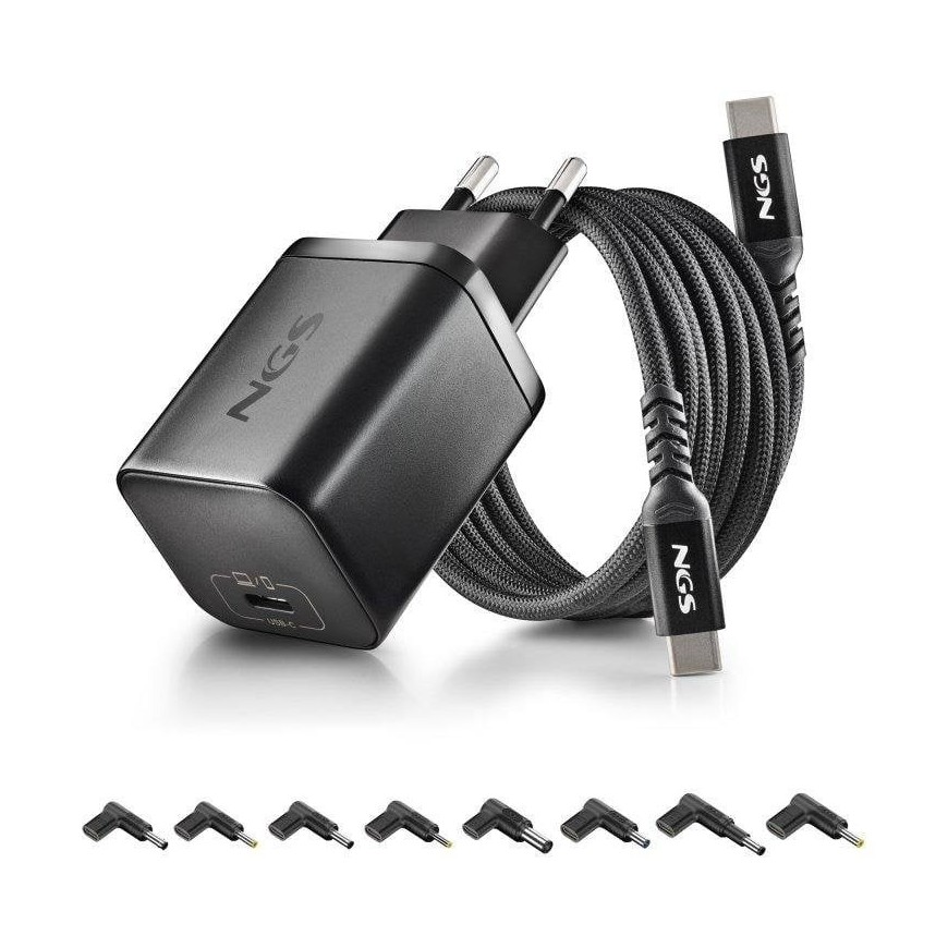 CARGADOR DE PORTATIL HP NGS BUD GAN USB-C 65W 8 CONECTORES + CABLE 1.5M USB-C BLACK