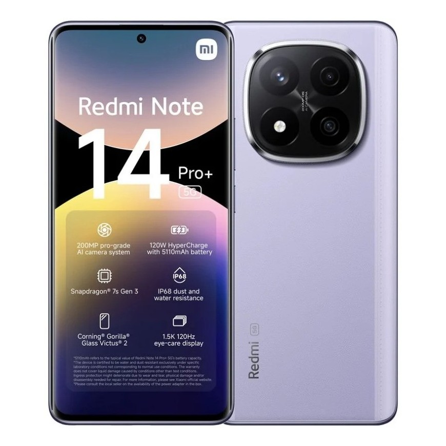SMARTPHONE XIAOMI REDMI NOTE 14 PRO+ 6.67 12GB/512GB/200MP/NFC/5G LAVANDER PURPLE