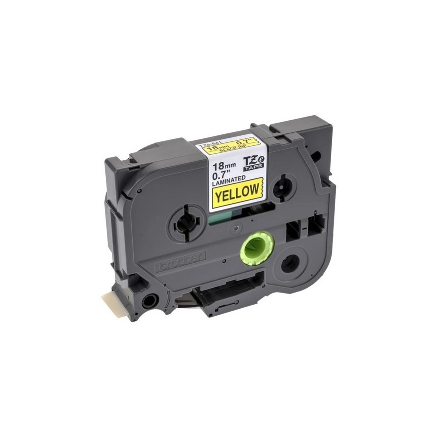 Cinta laminada Brother TZe-641 negra sobre amarillo (18 mm) resistente y visible para etiquetas duraderas en entornos exigentes.