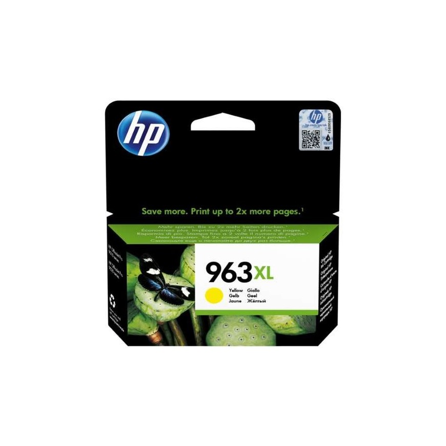 Cartucho de tinta amarillo de alta capacidad original HP 963XL con ref. HP 3JA29AE y un rendimiento de 1600 páginas.