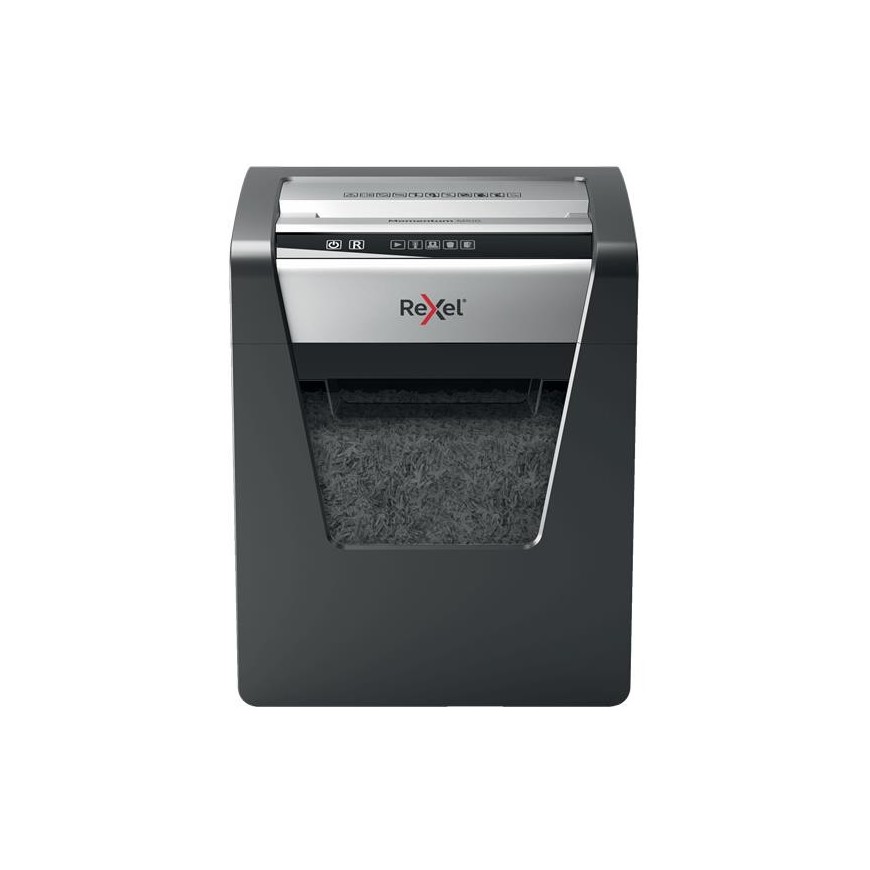 ¡La potencia para destruir más! La destructora de papel Rexel Momentum M510 destruye hasta 10 hojas de una vez, funciona ininterrumpidamente durante 2 horas y es ideal para oficinas pequeñas. La tecnología antiatasco del modelo M510 garantiza el funcionamiento ininterrumpido. P5, corte en partículas de 2 x 15 mm para mayor seguridad y máximo aprovechamiento de la papelera. Trituradora silenciosa con botones táctiles sencillos e intuitivos y una generosa papelera de 23 litros de capacidad (250 hojas A4).