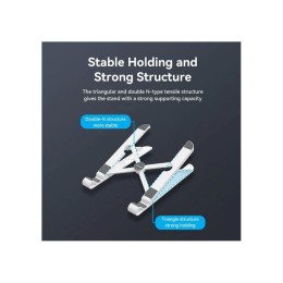 Soporte plegable y compacto con nueve ángulos ajustables, fabricado en plástico mate duradero y con almohadillas de silicona antideslizantes para mayor estabilidad.
