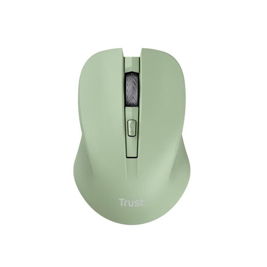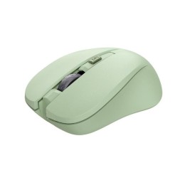 Cómodo ratón inalámbrico Mydo Silent Click de Trust con modernas teclas silenciosas, en color verde.