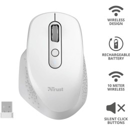 RATON TRUST OZAA ERGONOMICO RECARGABLE WIRELESS WHITE