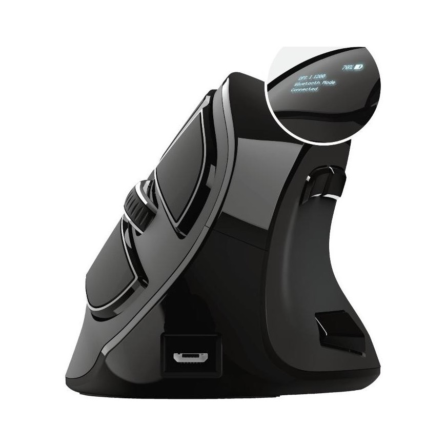 Evite la tensión en las muñecas durante largas jornadas de trabajo. Con el ratón ergonómico inalámbrico recargable Voxx de Trust, podrá trabajar todo el tiempo que desee. La forma vertical de este ratón ergonómico reduce la tensión en la muñeca y el brazo, mientras que los botones ajustables y el menú de la pantalla LED le ayudan a mejorar su ritmo de trabajo.