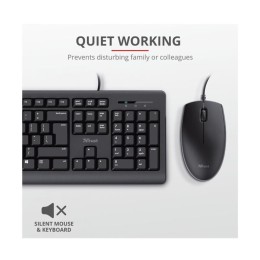 Combo de teclado y ratón TKM-250 Silence, con un teclado con diseño de tamaño completo, teclas resistentes al vertido de líquidos y permite ajustar su altura. más un ratón sencillo ambidiestro para poder empezar a trabajar tan pronto se conecta este juego al PC.