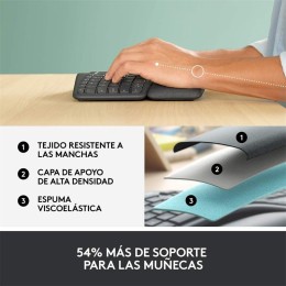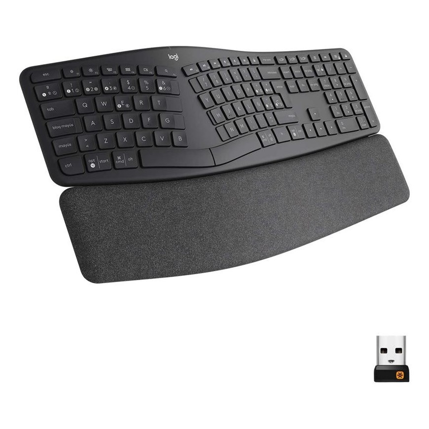 Escribe de forma más natural con ERGO K860, un teclado ergonómico avanzado que promueve una postura de escritura más relajada, reduce la flexión de las muñecas en un 25% y ofrece un 54% más de soporte para las muñecas.