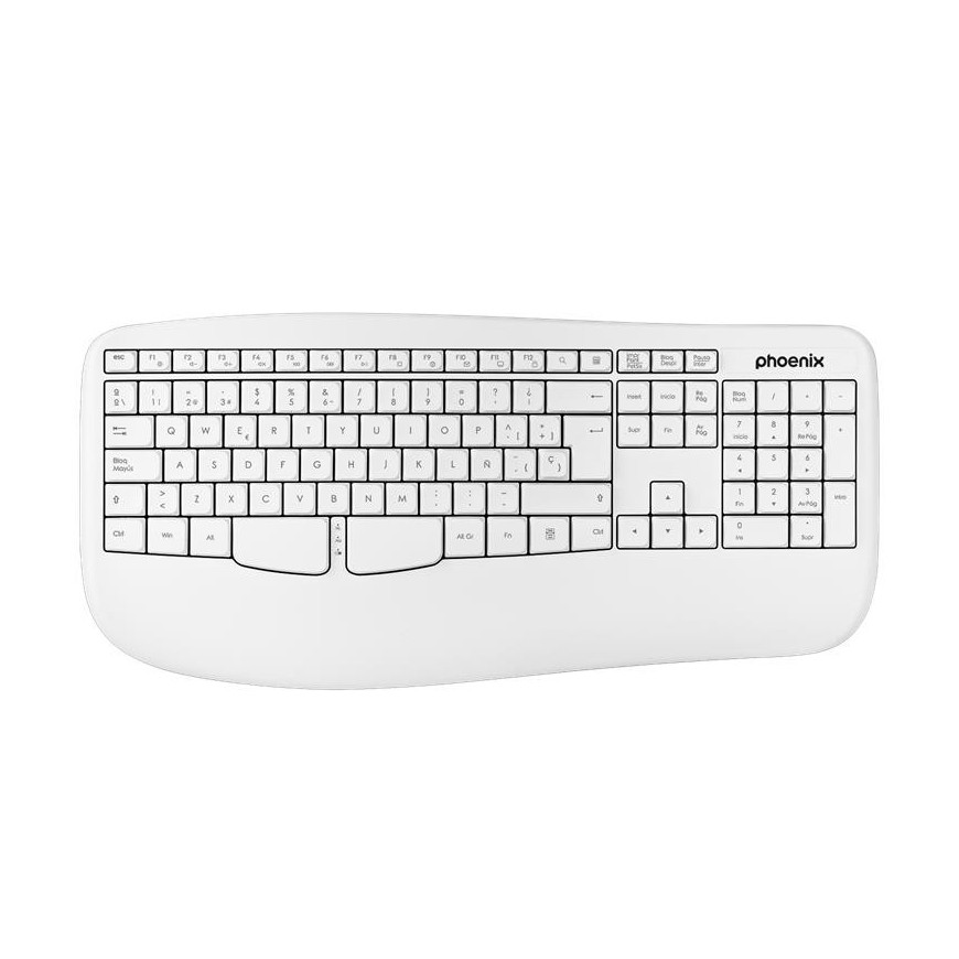 TECLADO PHOENIX K201 ERGONOMICO WIRELESS WHITE