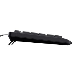 Hay teclados de todas las formas y medidas, ¿pero qué pasa si uno solo quiere algo básico? Eso es lo que ofrece exactamente el TK-150 de Trust. Tiene un diseño de tamaño completo, teclas resistentes al vertido de líquidos y permite ajustar su altura. Incluso se suministra en un paquete fácil de abrir y sostenible, con lo que se contribuye a respetar el medio ambiente y se ahorra tiempo. El teclado TK-150 responde exactamente a las necesidades de cada usuario.