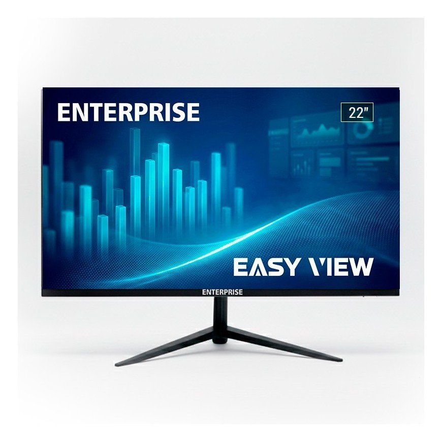 Monitor Enterprise Easy View 22" VA Full HD con 100Hz para una fluidez superior en el día a día, Adaptive Sync y modo Low Blue Light, diseño boundless en 3 lados y conectividad HDMI + VGA para máxima compatibilidad.