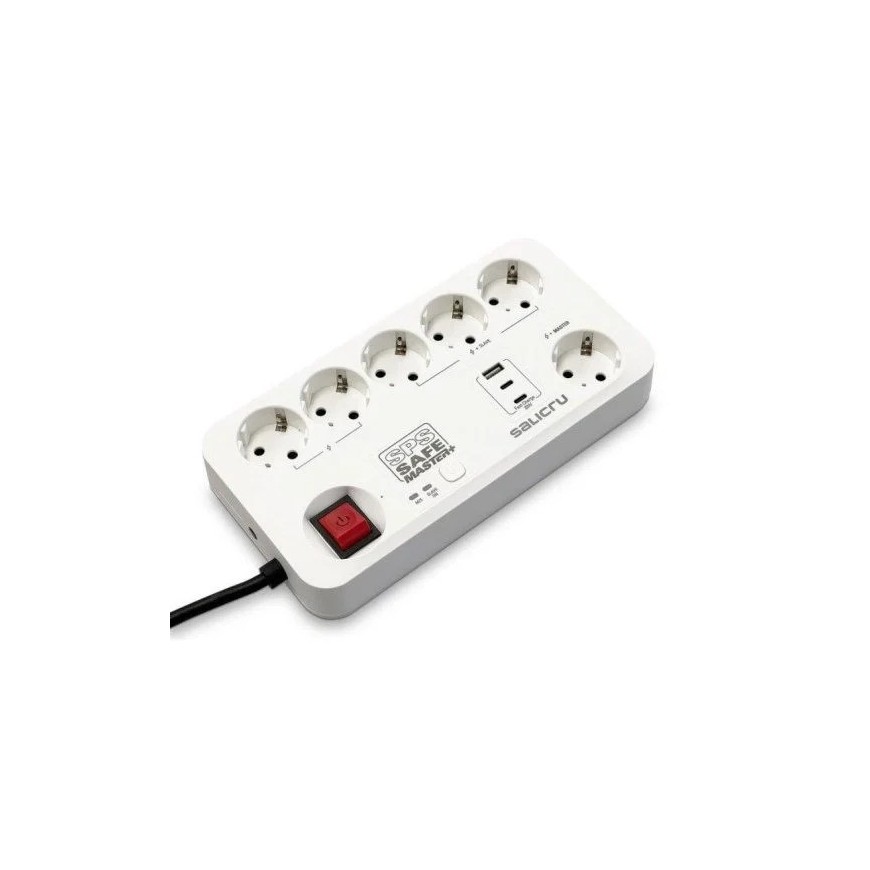 Protege tus equipos electrónicos frente a sobretensiones y picos eléctricos con la regleta Salicru SPS SAFE MASTER+, diseñada para dar máxima seguridad y funcionalidad en entornos profesionales y domésticos exigentes.