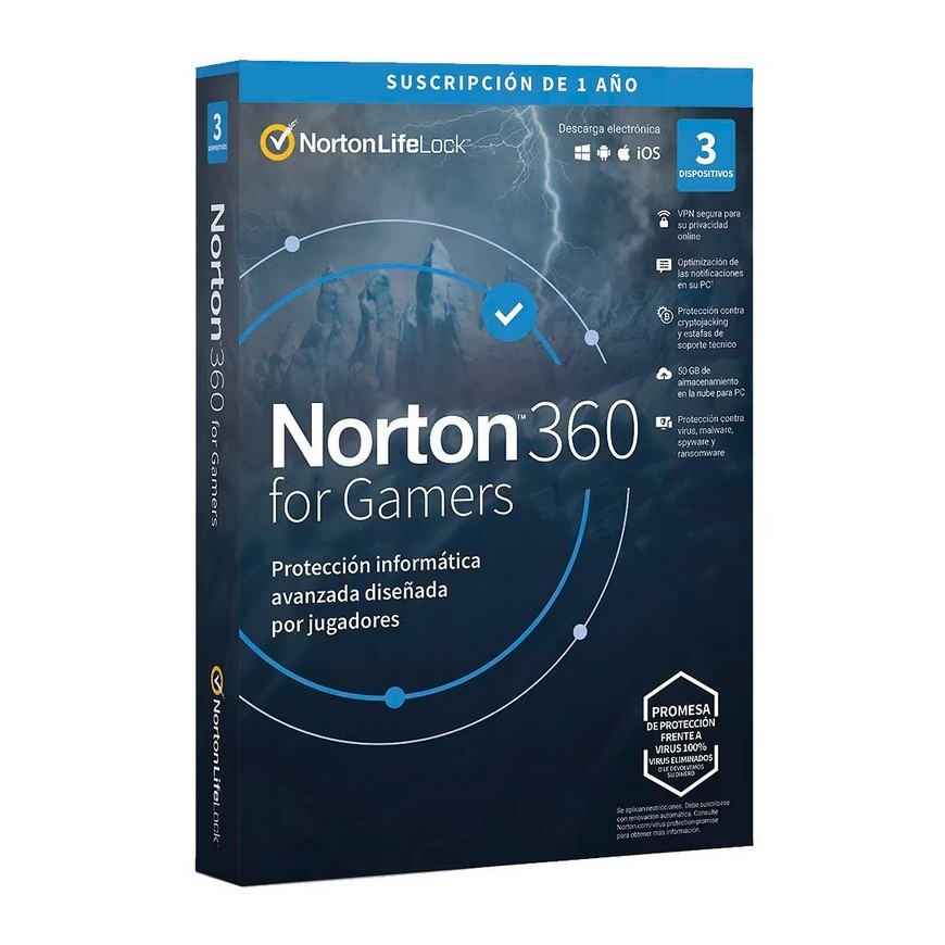 NORTON 360 FOR GAMERS 50GB ES 1 USER 3 DEVICE 1 AÑO L. ELECTRONICA