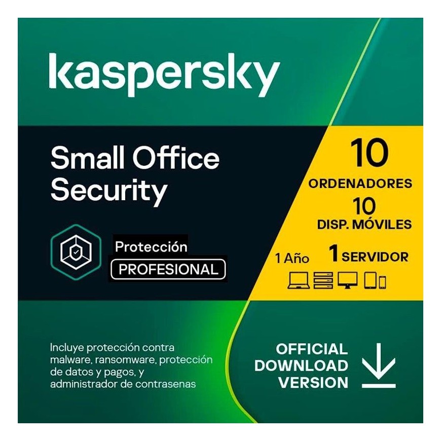 ANTIVIRUS KASPERSKY SMALL OF. SEC. 1L SERVER + 10L PC + 10L ANDROID L.ELEC