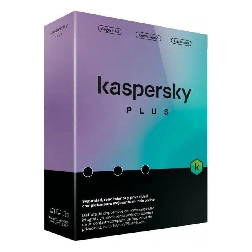 Seguridad. Rendimiento. Privacidad. Todo en una única aplicación fácil de usar. Kaspersky Plus ofrece ciberseguridad de última generación para protegerte frente a nuevos virus, ransomware y malware sin afectar a tu rendimiento. También incluye protección para pagos, administrador de contraseñas y VPN ilimitada para garantizar la privacidad y seguridad de tu vida digital.Compatible con: Windows® macOS® Android? iOS®