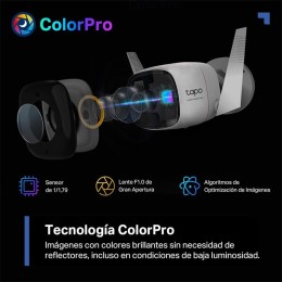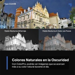 La Tapo C325WB de TP-Link es una cámara de seguridad exterior que destaca por su innovadora tecnología ColorPro Night Vision, la cual captura imágenes a todo color incluso en condiciones de luz extremadamente baja sin la necesidad de focos o luces infrarrojas. Esto la convierte en una excelente opción para monitoreo nocturno, proporcionando una claridad de imagen que antes solo se lograba con iluminación adicional.